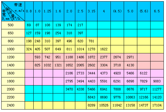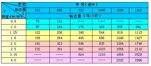 1、輸送能力Qv值系按水平運輸,動堆積角θ為20°,托輥槽角λ為30°時計算的。